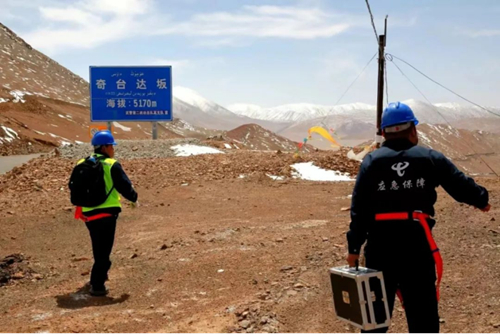 在隨后的線路維護過程中,記者發(fā)現(xiàn),師亞峰滿臉都寫著“值得”和“驕傲”。在師亞峰嘴里,沿線的每一份變化,都印證著他身上的“電信藍”!他告訴記者,從海拔最低的庫地達坂3150米到海拔最高的奇臺達坂5170米,沿線的貨車司機可以給家人報平安、游客可以隨時和外界分享新藏線上的獨特美景、能源企業(yè)也可以進入數(shù)字化發(fā)展新階段;在新藏線的181公里處的某礦產(chǎn)企業(yè),無人礦山及智慧礦山建設(shè)正在有條不紊地建設(shè)中,在大紅柳灘的兩家礦產(chǎn)企業(yè)也早早地享受到了沿線的電信服務(wù),優(yōu)質(zhì)的高速網(wǎng)絡(luò);同時,一直在沿線提供電力建設(shè)的電建企業(yè)也在建設(shè)過程及后期的維護過程中,得到了網(wǎng)絡(luò)的全程通信守護。近年來,師亞峰和他的團隊,一個個達坂進行突破,從3G網(wǎng)絡(luò)建設(shè)到4G和5G網(wǎng)絡(luò)。守邊防的戰(zhàn)士們,從漫山遍野找信號轉(zhuǎn)變?yōu)樵跔I房里就能與千里之外的家人視頻通話。