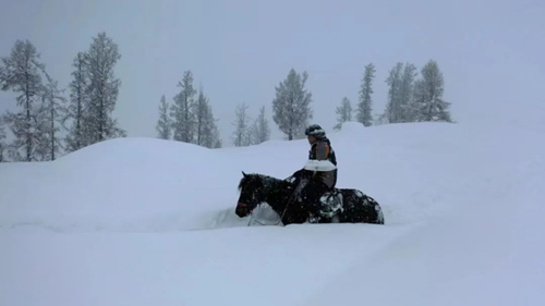 至于為什么牽馬,卡里哈爾向記者介紹道:“雪太深了,如果騎馬,一直走,一直拱雪,馬會受不了?!焙棠静菰挥诳{斯河與禾木河交匯處的山間斷陷盆地中,群山環(huán)抱、森林茂密、地形復(fù)雜,氣候多變,冬季氣溫經(jīng)常低于零下30攝氏度,結(jié)冰期從10月一直到來年的4月。
