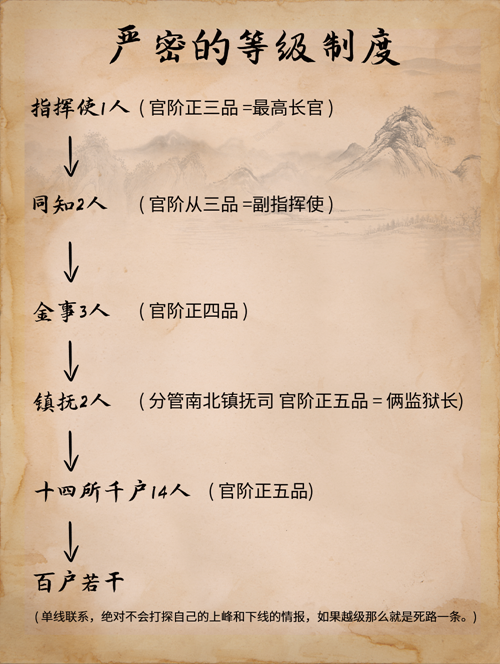 根據(jù)錦衣衛(wèi)制度,監(jiān)視對象一旦發(fā)現(xiàn),自己就要被替換或者自殺,避免情報(bào)泄露。錦衣衛(wèi)的線人都臥底于達(dá)官顯貴的府邸,有的一臥底就是數(shù)年,當(dāng)時(shí)朝中的大臣無不對錦衣衛(wèi)非常恐慌。