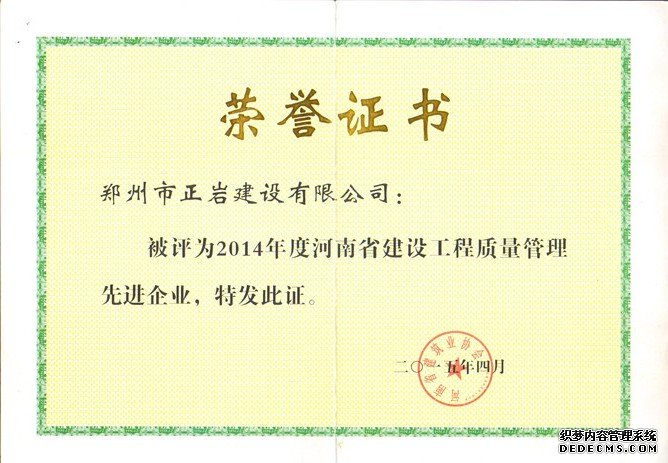 2014年度省質(zhì)量先進(jìn)企業(yè)