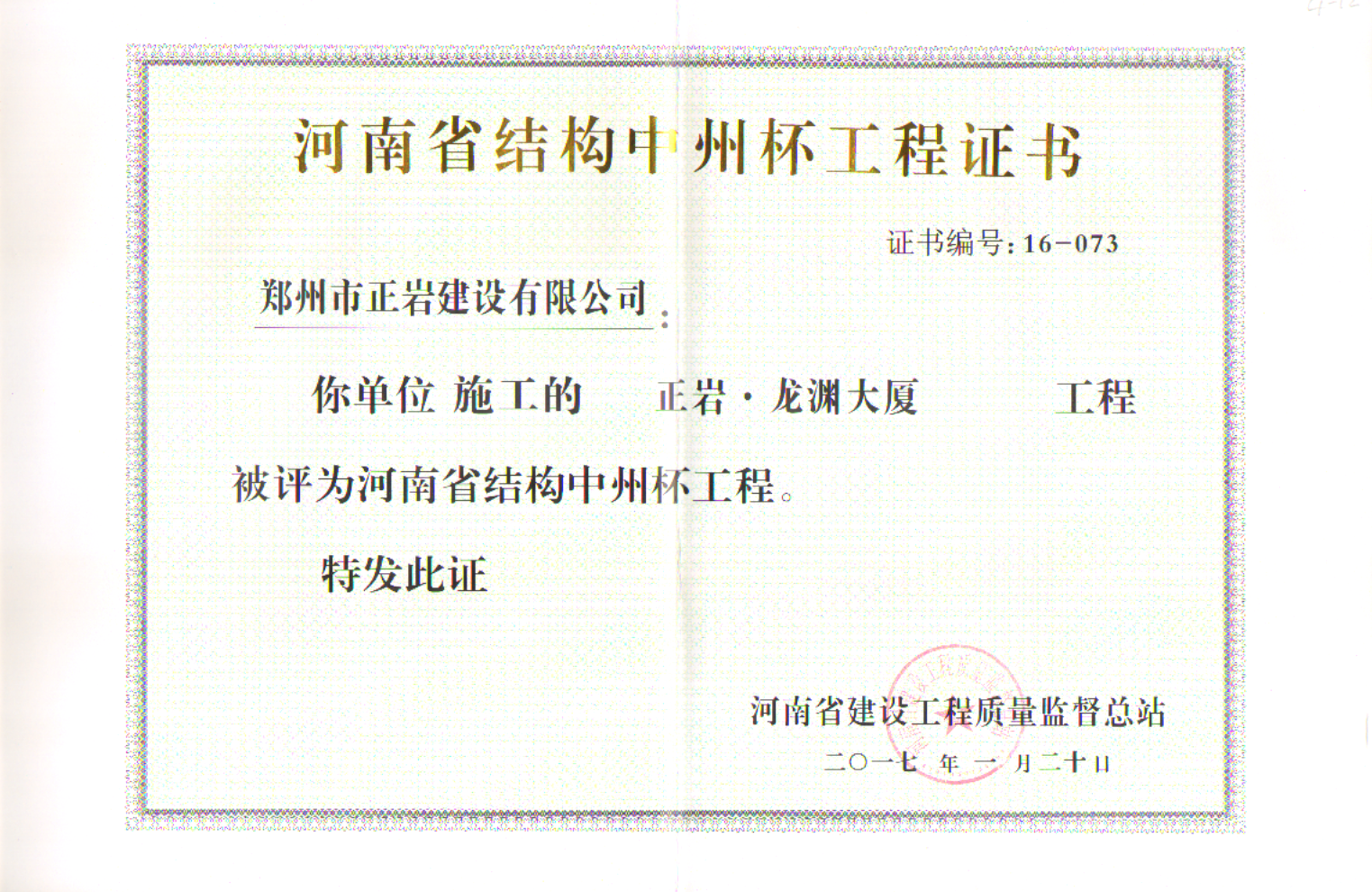 正巖龍淵大廈結(jié)構(gòu)中州杯