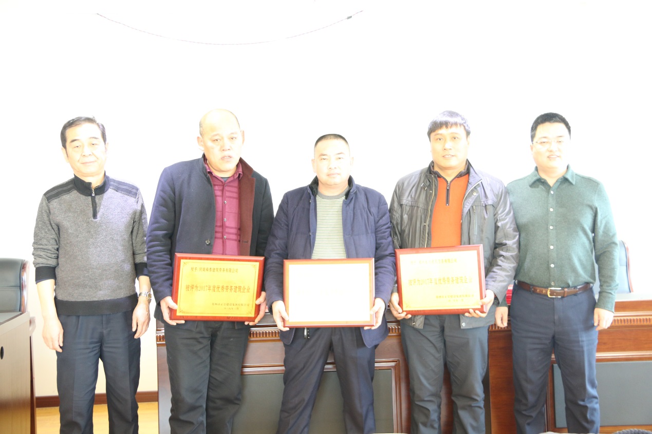 2017年是集團(tuán)公司穩(wěn)中求進(jìn)、謀求發(fā)展的一年,公司今天的成績離不開各個項目部的大力支持,經(jīng)公司研究評定8個優(yōu)秀項目部、3個優(yōu)秀勞務(wù)公司、34個項目先進(jìn)個人,并給予表彰。