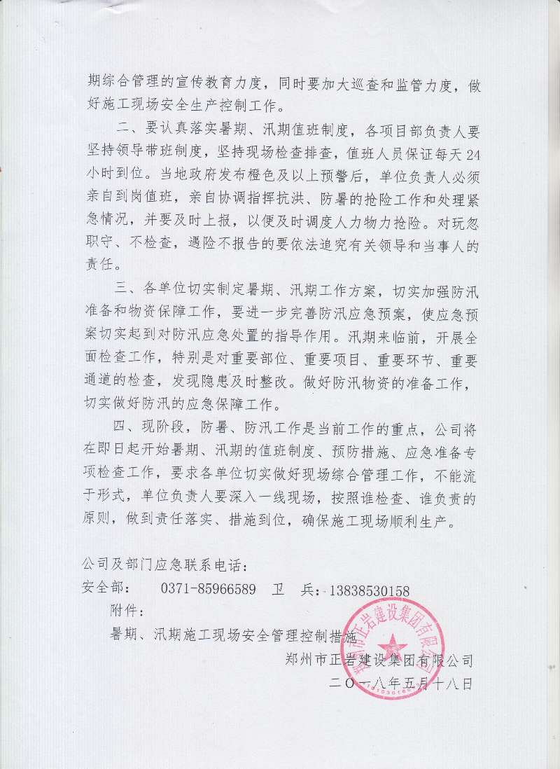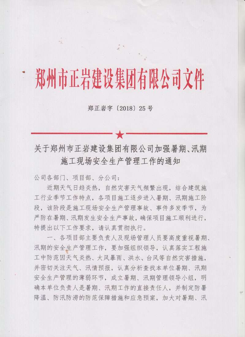 鄭正巖字〔2018〕25號(hào) 加強(qiáng)暑期汛期施工現(xiàn)場安全生產(chǎn)管理工作的通知