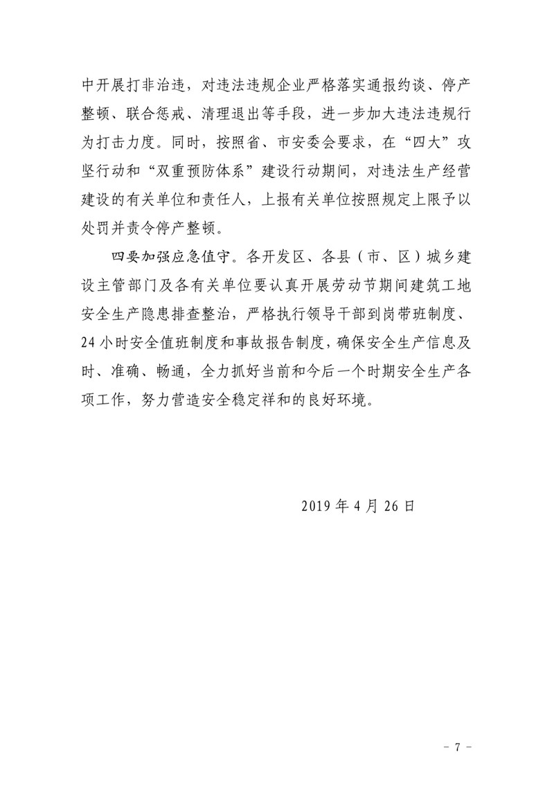 轉(zhuǎn)發(fā)鄭州市城鄉(xiāng)建設(shè)委員會(huì)關(guān)于開展2019年勞動(dòng)節(jié)期間建筑施工安全