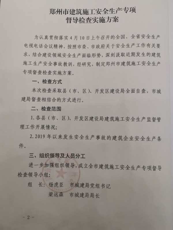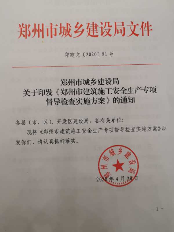 鄭州市城鄉(xiāng)建設(shè)局關(guān)于印發(fā)《鄭州市建筑施工安全生產(chǎn)專項(xiàng)督導(dǎo)檢查實(shí)施方案》的通知