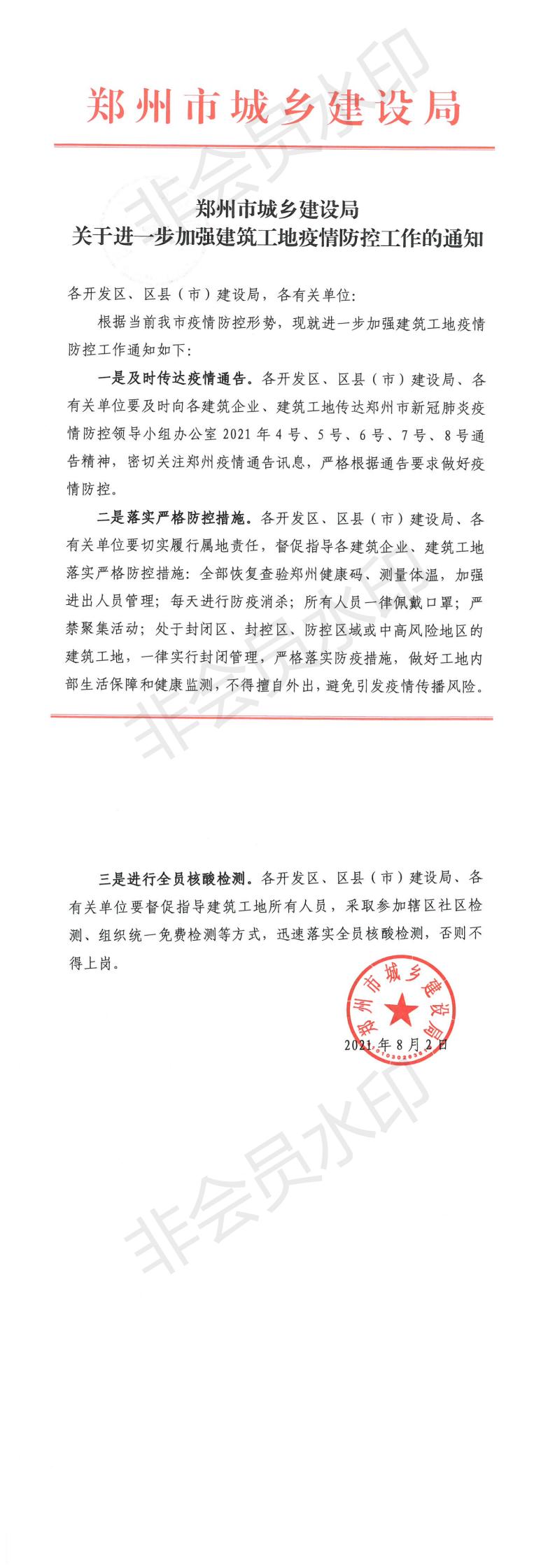 鄭州市城鄉(xiāng)建設(shè)局關(guān)于進(jìn)一步加強(qiáng)建筑工地疫情防控工作的通知