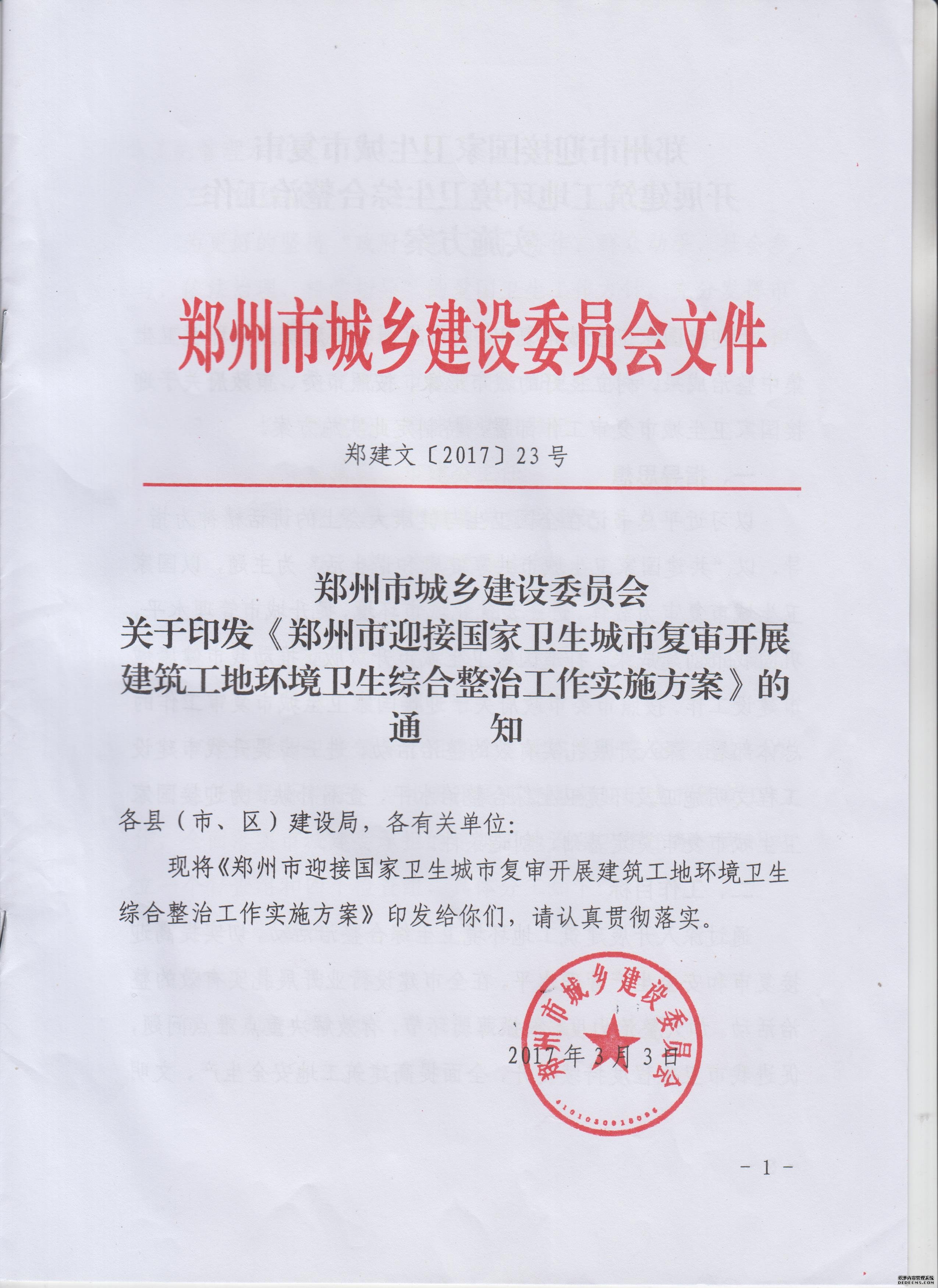 鄭建文【2017】23號 鄭州市城鄉(xiāng)建設(shè)委員會關(guān)于印發(fā)《鄭州市迎接國家衛(wèi)生城市復(fù)審開展建筑工