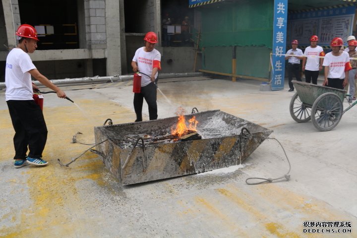 消防應(yīng)急救援演練中應(yīng)急救援人員用泡沫滅火器滅火