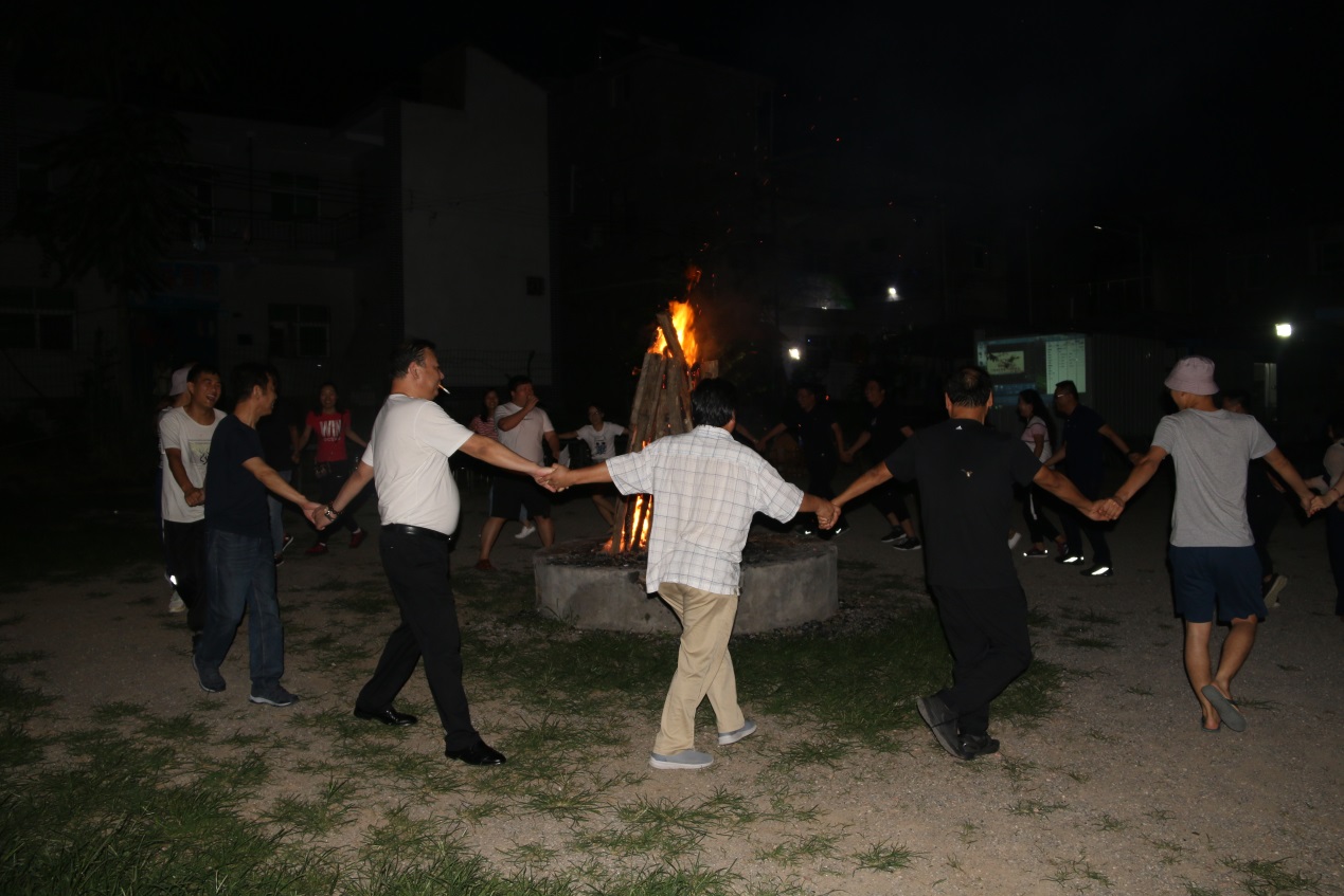 公司員工第一天中午從公司出發(fā),大概下午六點左右到達豫西大峽谷景區(qū)的民宿,住宿與晚餐安排完畢后,我們員工參加了當(dāng)?shù)靥厣捏艋鹜頃?,圍著火堆,暖暖的火苗照亮我們每一個人,唱歌、做游戲使場面歡樂不已,真的是太熱鬧了。