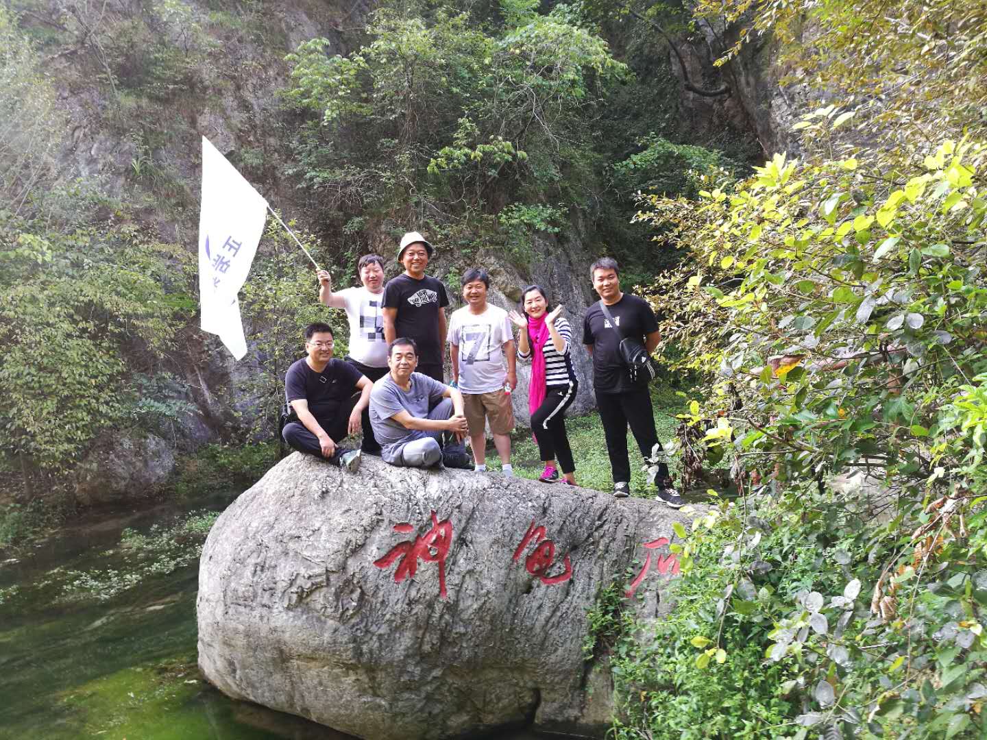 團隊在“喊泉”處合影留念