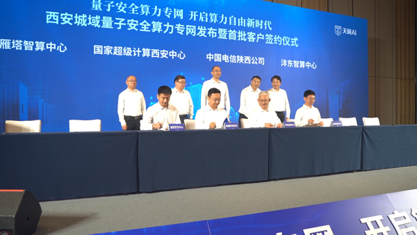 隨著經(jīng)濟(jì)的數(shù)字化轉(zhuǎn)型加速,數(shù)據(jù)已成為關(guān)鍵資源,對經(jīng)濟(jì)結(jié)構(gòu)和競爭格局產(chǎn)生深遠(yuǎn)影響。近年來,西安市加快數(shù)字政府建設(shè),大力發(fā)展數(shù)字經(jīng)濟(jì),先后建成超算中心、智算中心等一批新型基礎(chǔ)設(shè)施,隨著數(shù)字技術(shù)的迅猛發(fā)展,必將催生大量數(shù)字基礎(chǔ)設(shè)施升級換代和以智算為基礎(chǔ)的產(chǎn)業(yè)迭代新需求。中國電信陜西公司積極響應(yīng)國家號召,全面落實(shí)省委、省政府的工作部署,推動“東數(shù)西算”戰(zhàn)略的實(shí)踐,滿足各級政府、企業(yè)、高校和科研院所對算力和AI服務(wù)的實(shí)際需求,建設(shè)全國首個城域量子安全算力專網(wǎng)——西安城域量子安全算力專網(wǎng)。