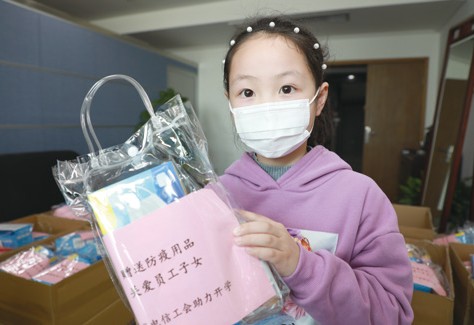 2020 年 4 月,江蘇公司各級(jí)工會(huì)積極采購(gòu)防疫用品,為員工上學(xué)子女贈(zèng)送防疫禮包